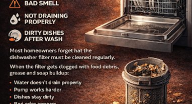Most homeowners don’t realize that a clogged dishwasher filter ca…